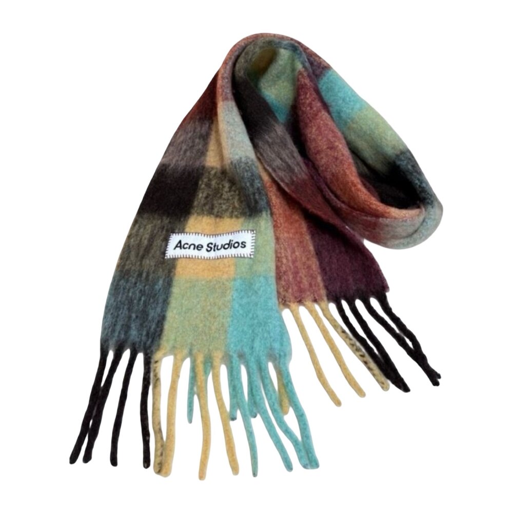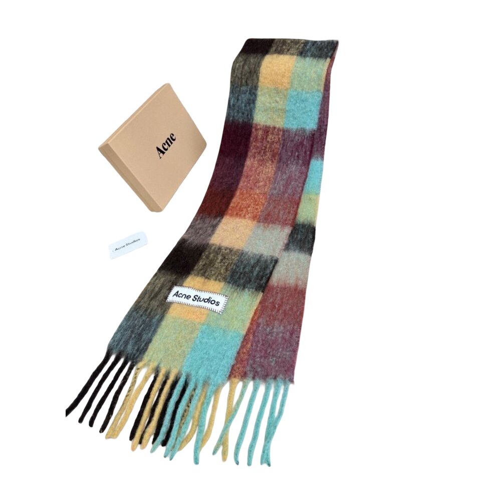 Checked scarf is made of a soft mohair blend with fringed ends. Detailed with an Acne Studios embroidered logo. Crafted from carefully selected material known for its soft and hairy fibres.