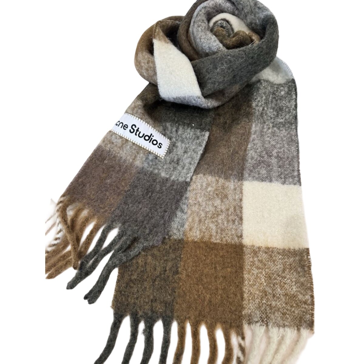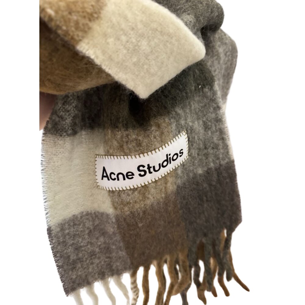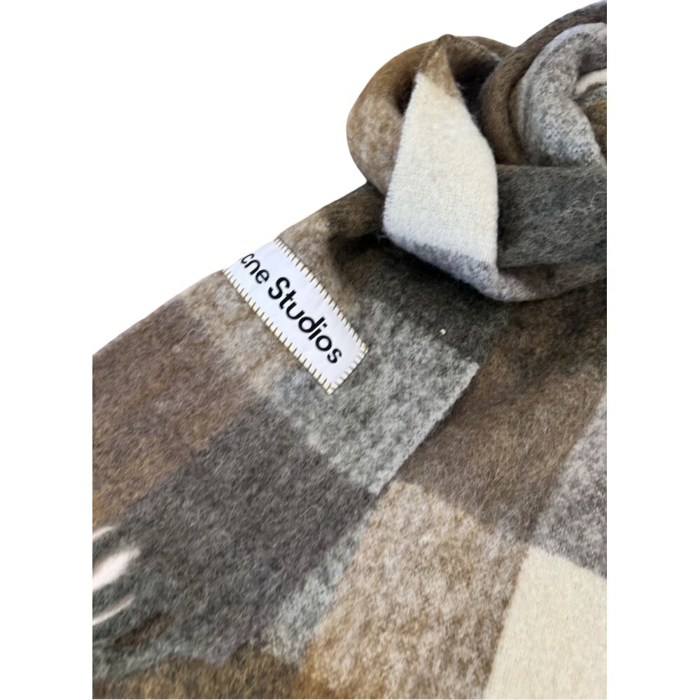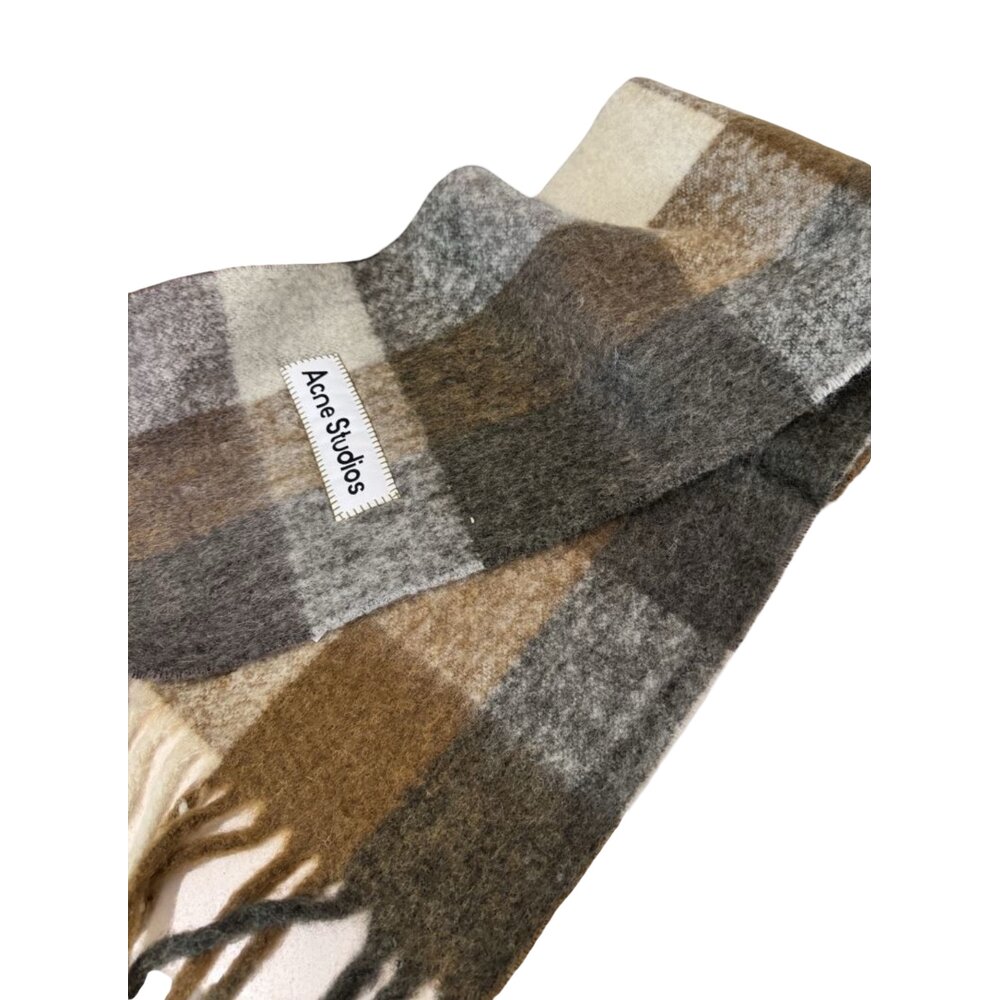 Checked scarf crafted from a soft mohair blend with fringed ends, detailed with an embroidered Acne Studios logo. Made from carefully selected yarns known for their fluffy texture and warmth.