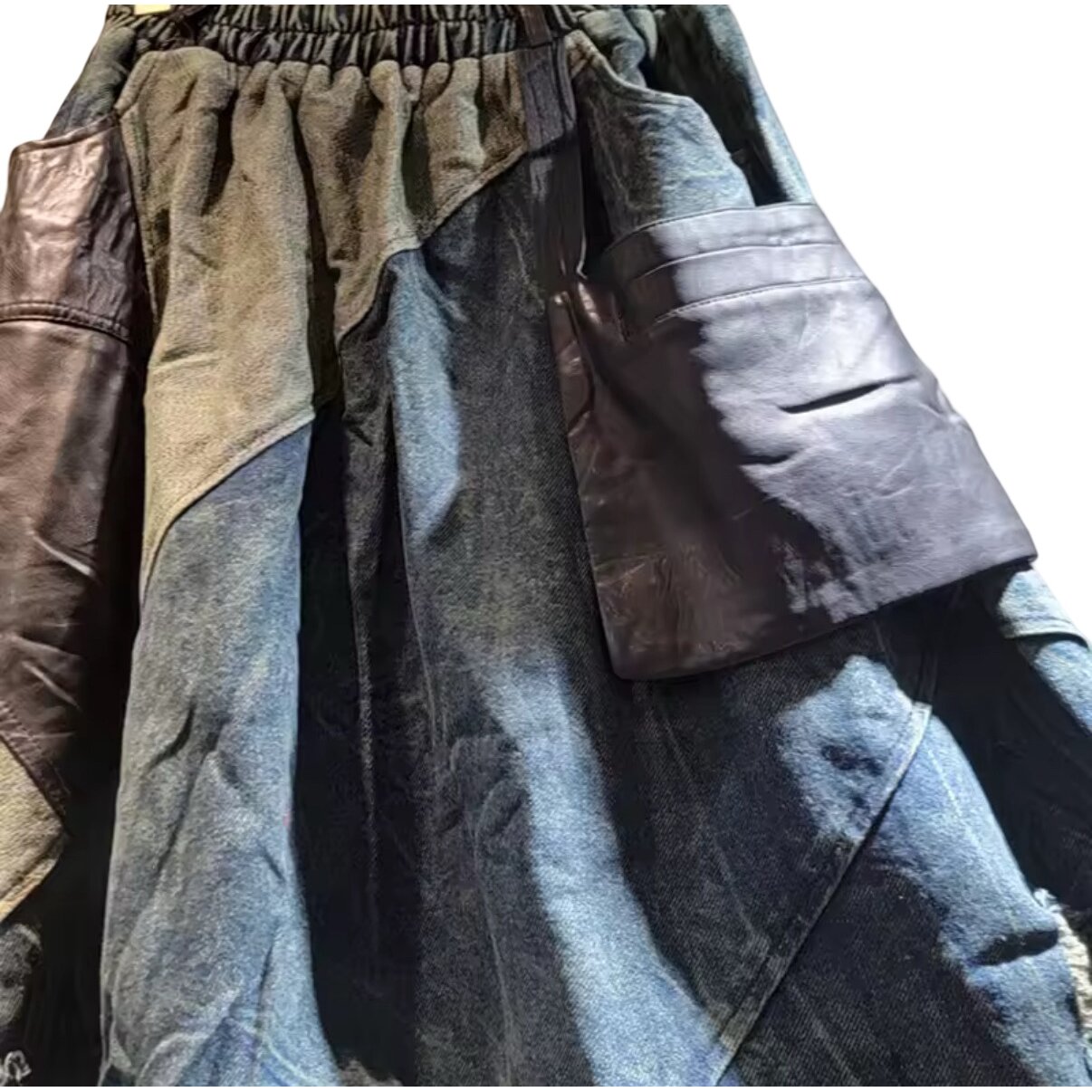 A statement piece engineered at the intersection of utilitarian streetwear, post-industrial fashion, and handcrafted deconstruction, the Deconstructed Nomad Drop-Crotch Denim Trousers redefine contemporary silhouette and texture.