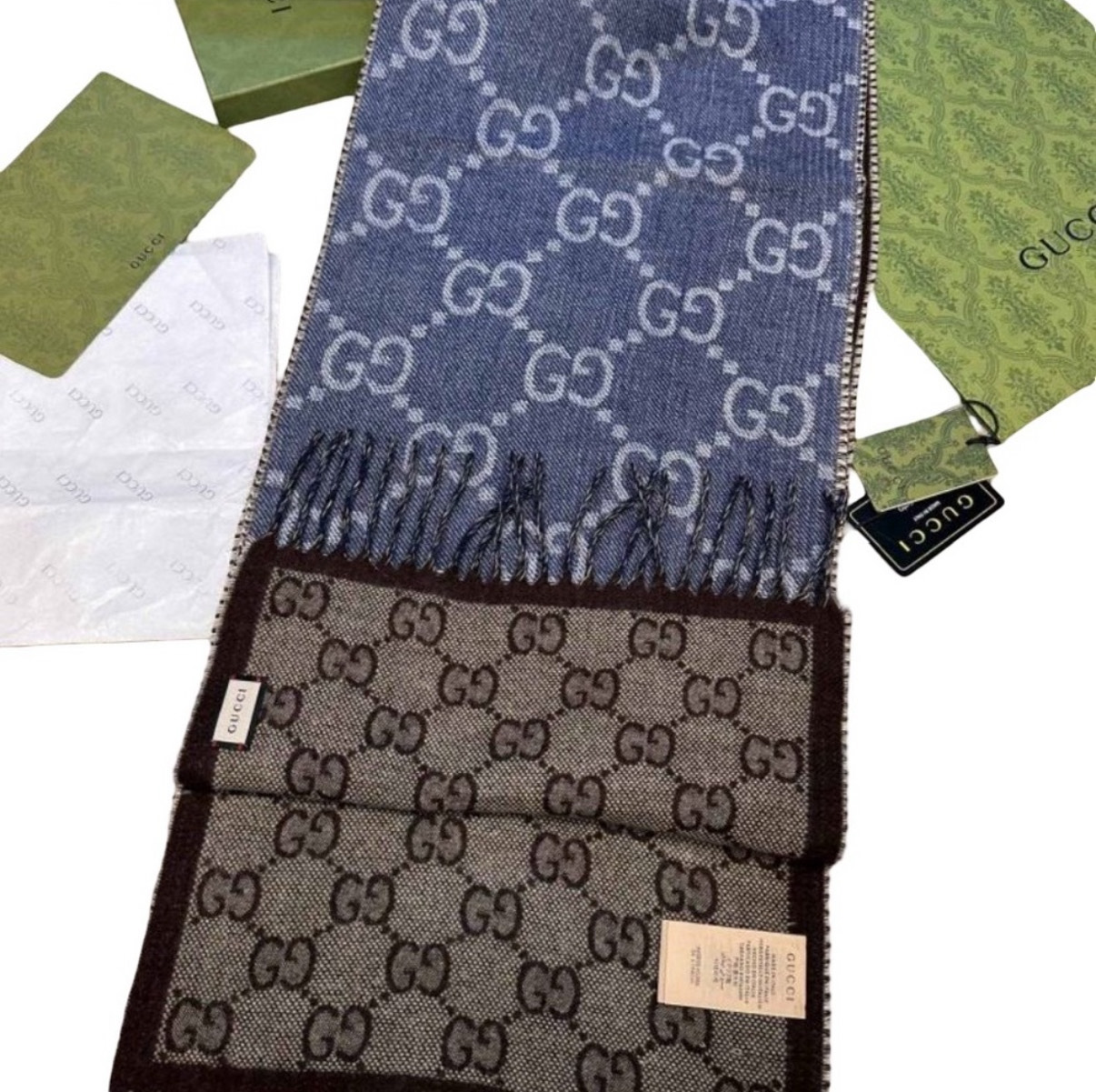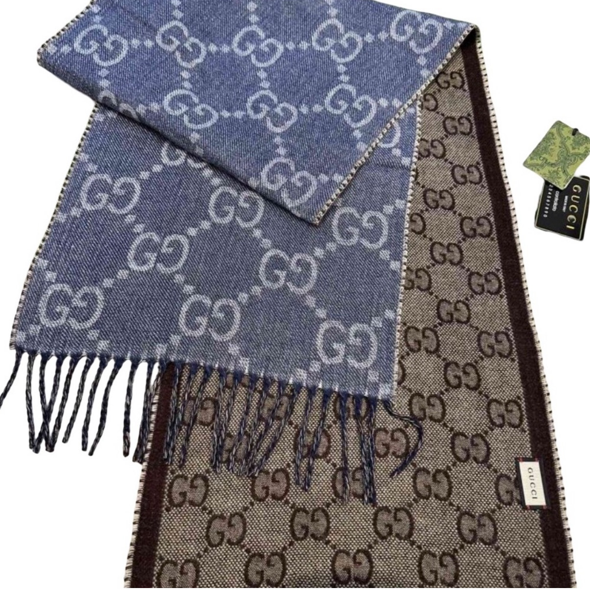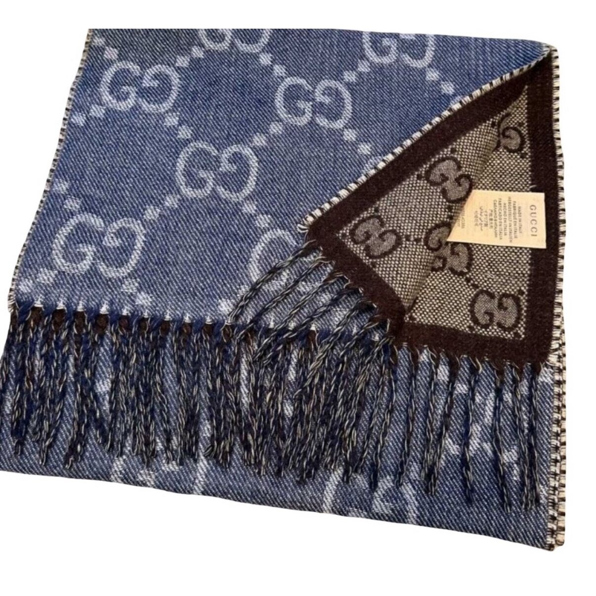 Brown and Denim Blue GG wool