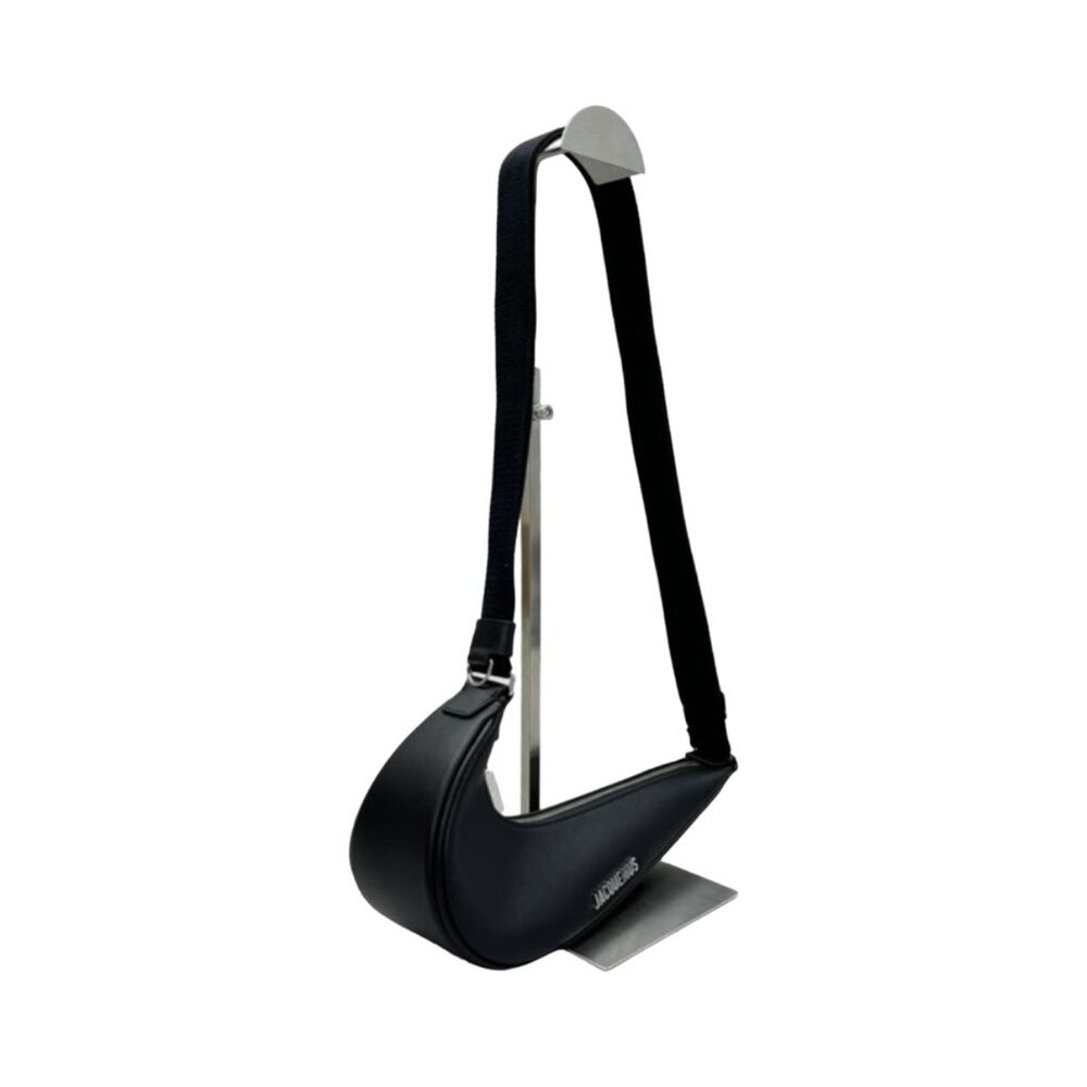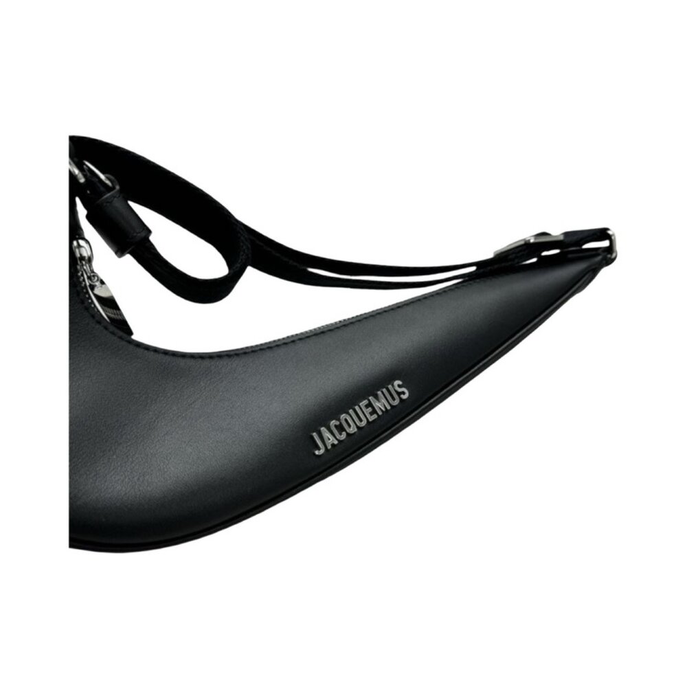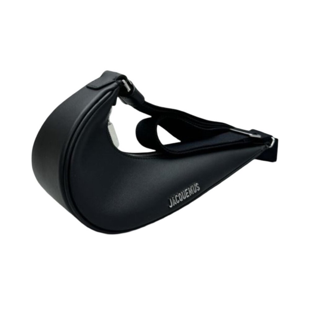 Dark Navy crescent-shaped bag by Jacquemus. Features adjustable strap and sleek design.