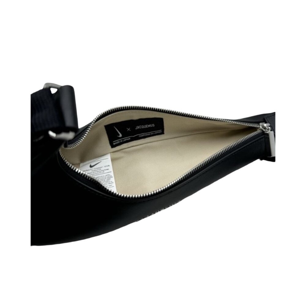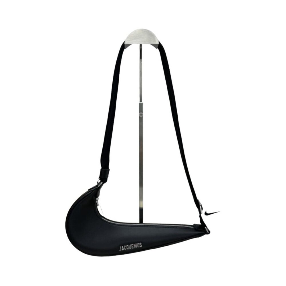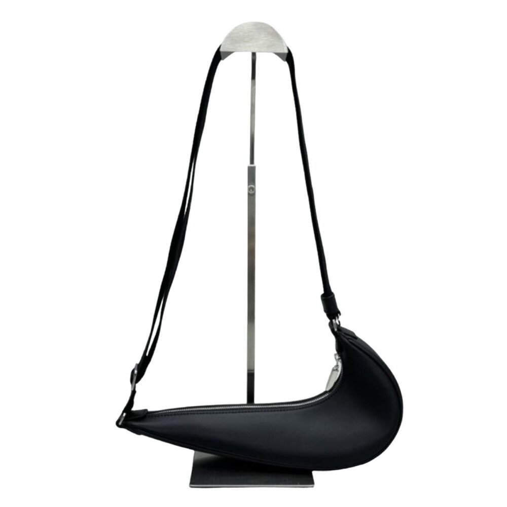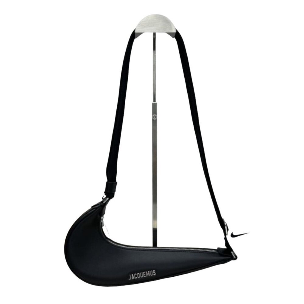 Dark Navy crescent-shaped bag by Jacquemus. Features adjustable strap and sleek design.