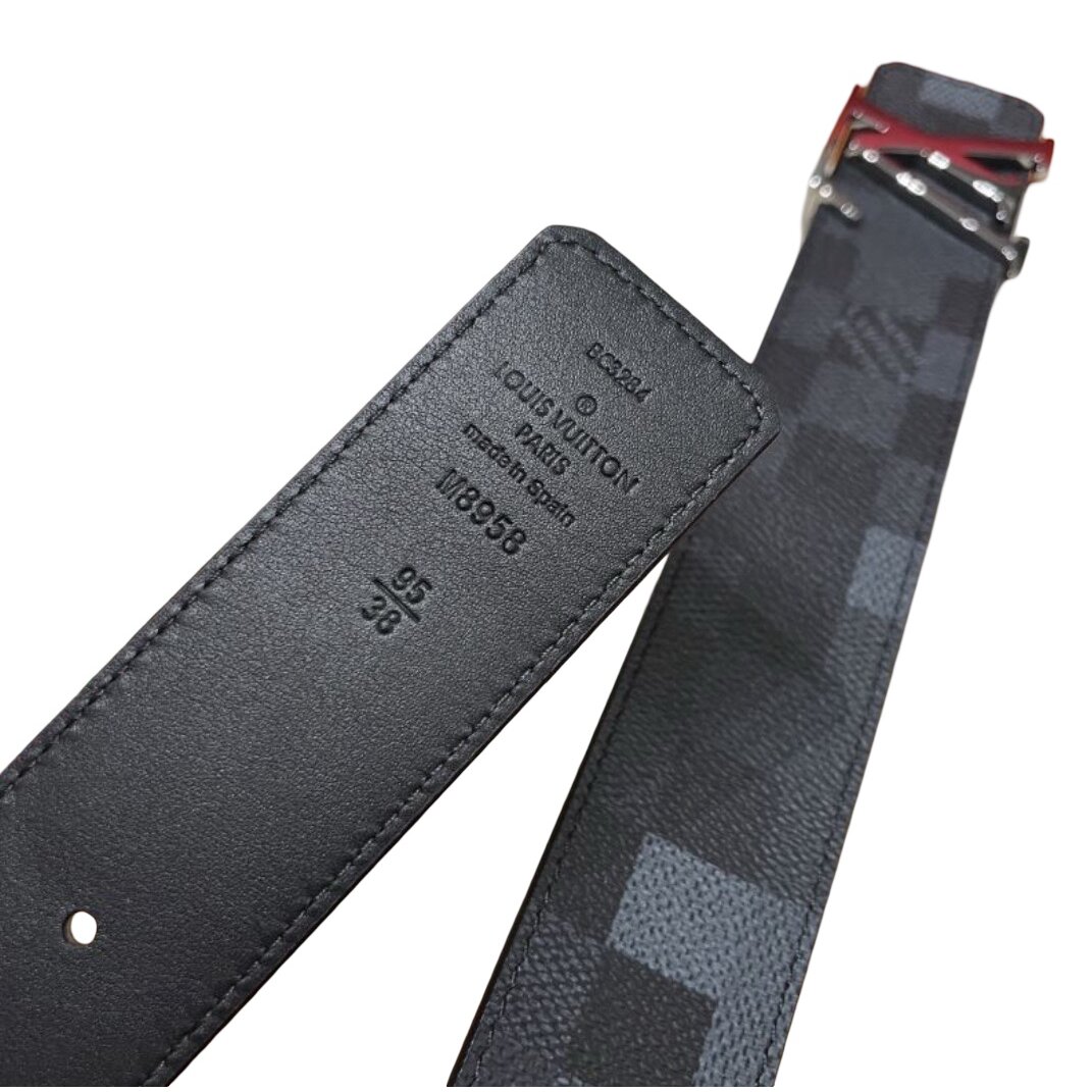 The LV Initiales Damoflage 40mm Reversible Belt debuts a new timeless color for the motif designed and introduced by Pharrell Williams. The pixelated Damoflage pattern now appears in an understated yet sleek black, made all the more refined with the polished belt buckle of LV Initials and a Marque L.Vuitton Déposée signature.