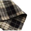 The front placket anchors the piece with a vertical strip of subtle lavender-grey plaid, framed by heavier heritage checks on either side. To the right, a textured micro-grid panel introduces refined structure, balancing the bolder black-and-cream tartans that dominate the left and sleeve sections. The result is a dynamic asymmetry that feels curated rather than chaotic.
