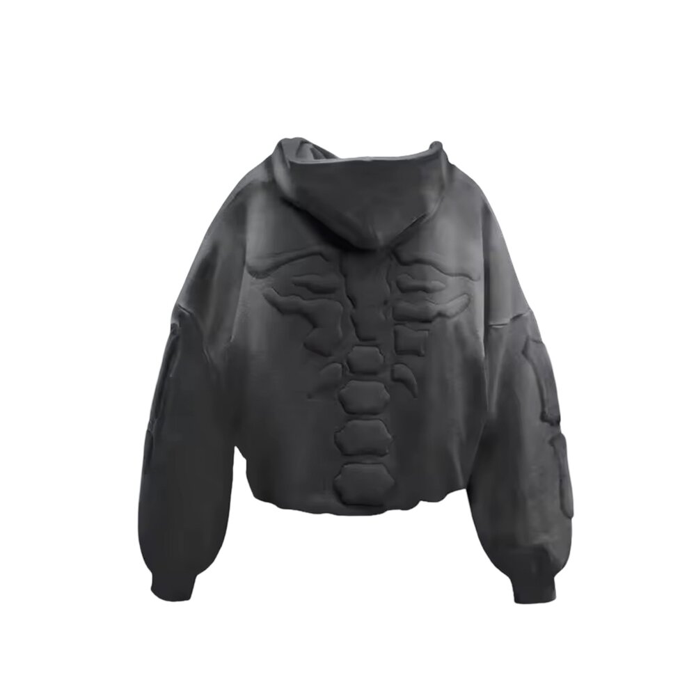 What sets the Nocturne Vertebrae Sculpted Shadow Hoodie apart is its emotional and visual restraint. The monochrome palette invites closer inspection, rewarding the observer with nuanced texture rather than overt contrast. Each raised contour casts faint shadows that shift with movement, creating a dynamic interplay between light and form. This quality makes the hoodie equally suited for fashion editorials, creative urban styling, performance wear, or elevated casual environments.