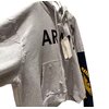 Crafted in a premium soft-touch cotton-blend fleece, the body showcases a light heather-grey tone that delivers both visual neutrality and versatile styling potential. The front is anchored by oversized “ARMY” typography rendered in deep black, creating a commanding visual focal point that contrasts sharply against the muted base. Complementing this is a circular crest-style patch positioned on the chest, featuring multi-color insignia elements that echo traditional uniform badges while introducing a modern graphic identity.