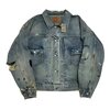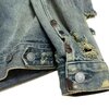 Faded patches and subtle discoloration marks enhance the jacket’s narrative, evoking the look of a treasured archival piece rediscovered from another era. The cuffs and hem maintain structural integrity through reinforced stitching and classic metal hardware, providing functional reliability beneath the visual grit. Interior label detailing and original tag elements add authenticity, reinforcing its heritage-inspired foundation.