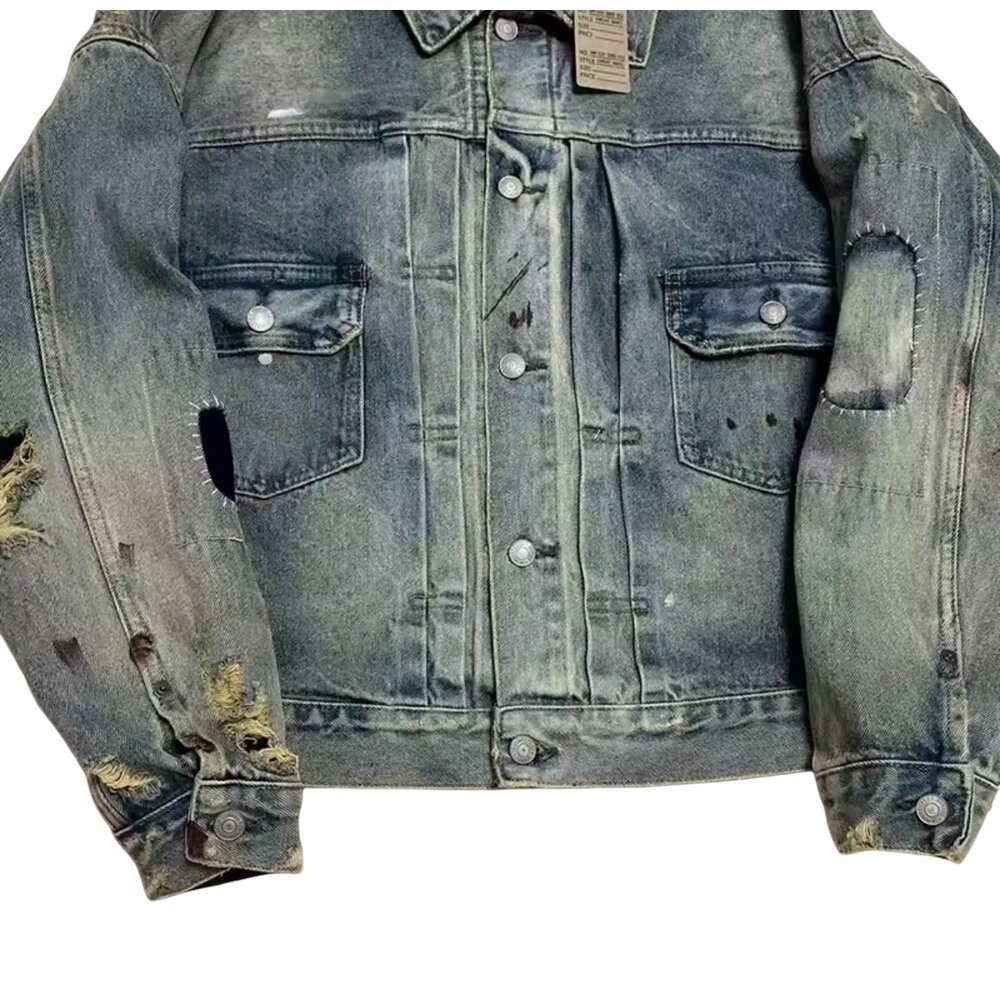 Ideal for collectors of elevated vintage, denim enthusiasts, and those who value statement outerwear with narrative depth, this jacket stands as both a staple and a centerpiece. With time, it will continue to evolve, adapting to its wearer and gaining further character. The Relic Fade Apocalypse Denim Trucker Jacket is not simply a denim jacket—it is a testament to endurance, artistry, and timeless rebellion.