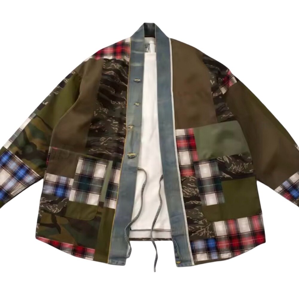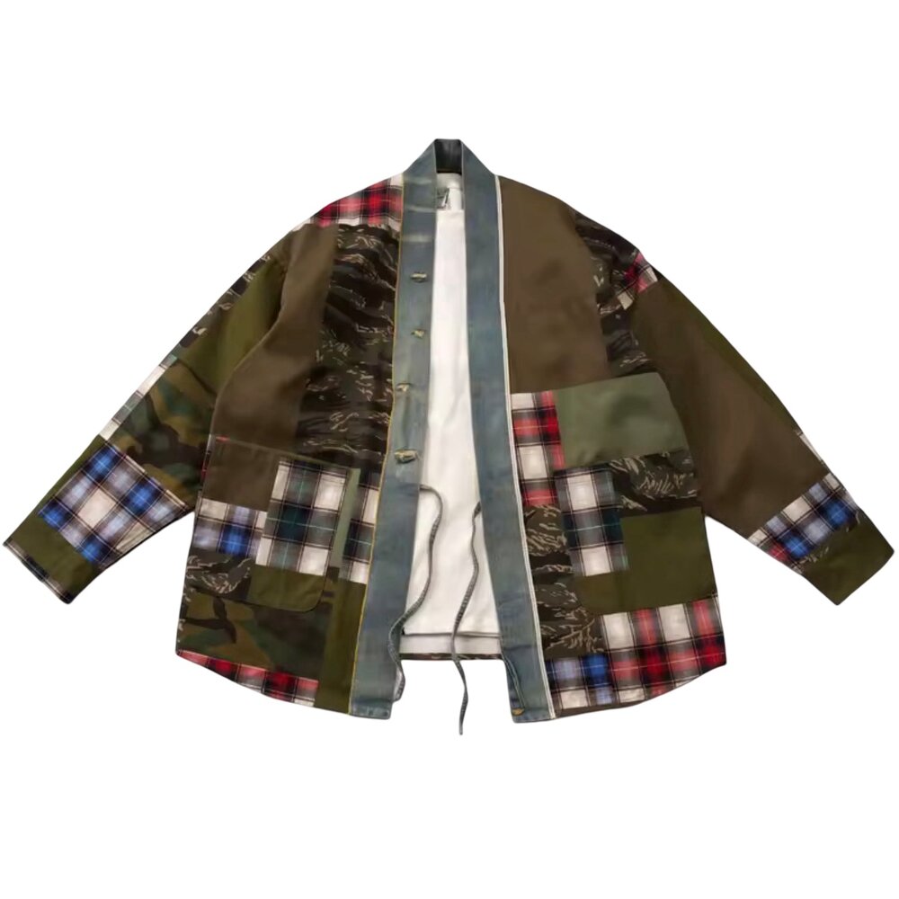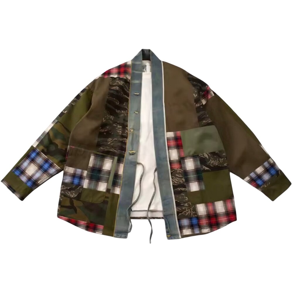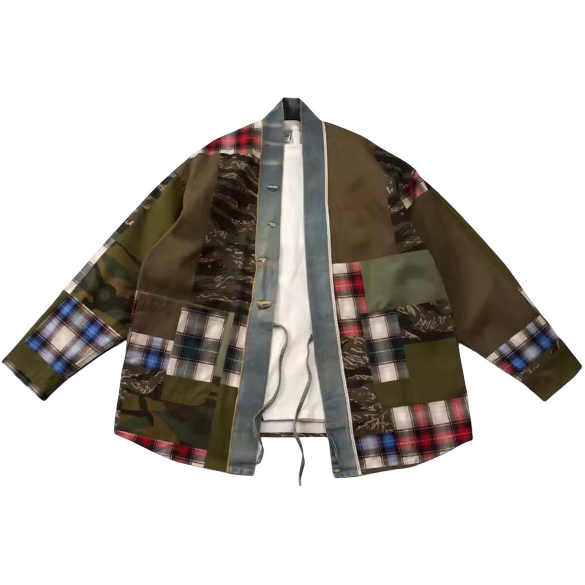 The Urban Nomad Mosaic Coat is a masterfully engineered fusion of military grit, heritage tailoring, and street-level artistry. Designed as a wearable collage, this statement outer layer redefines contemporary patchwork by blending camouflage, tartan plaid, olive field tones, and denim detailing into one cohesive architectural silhouette.