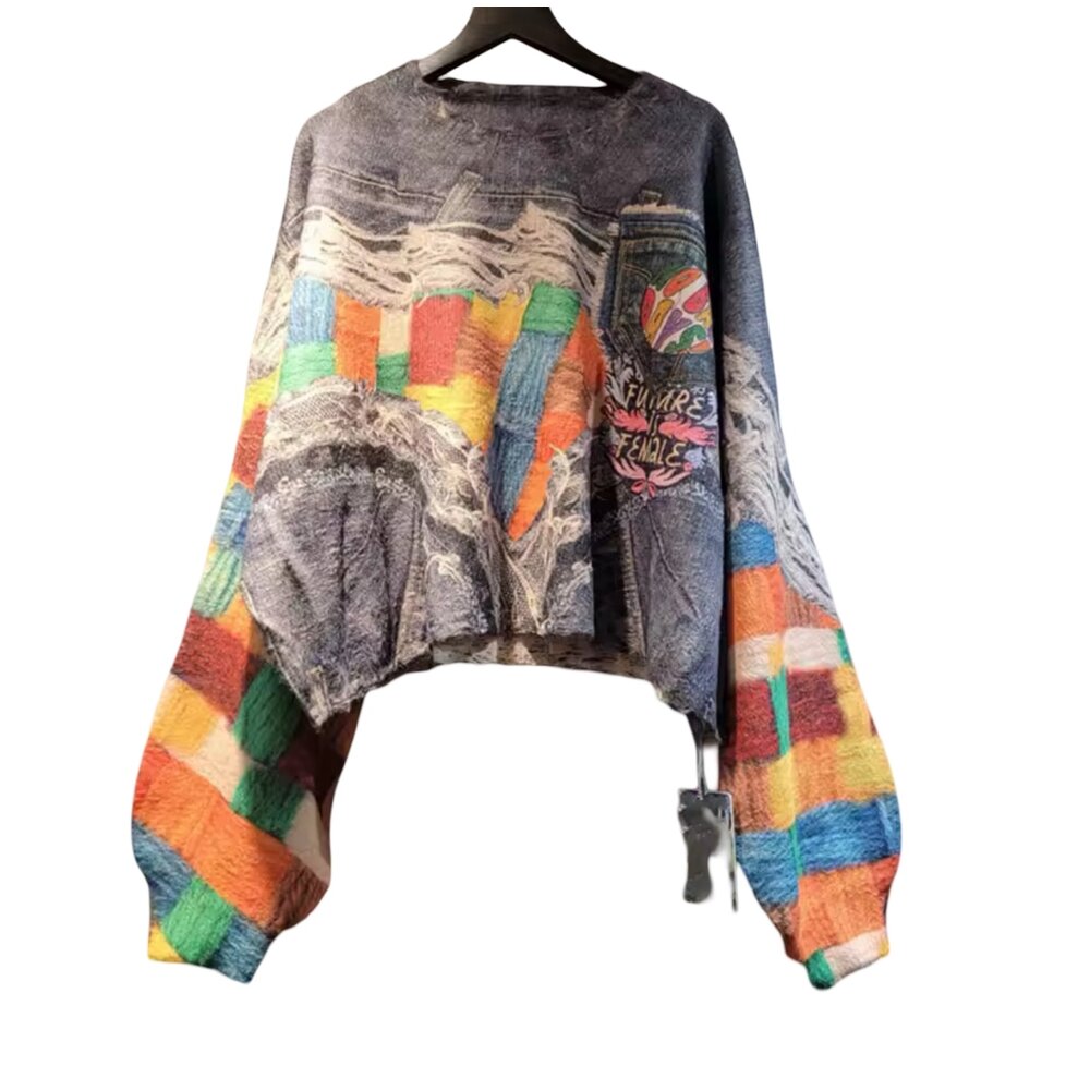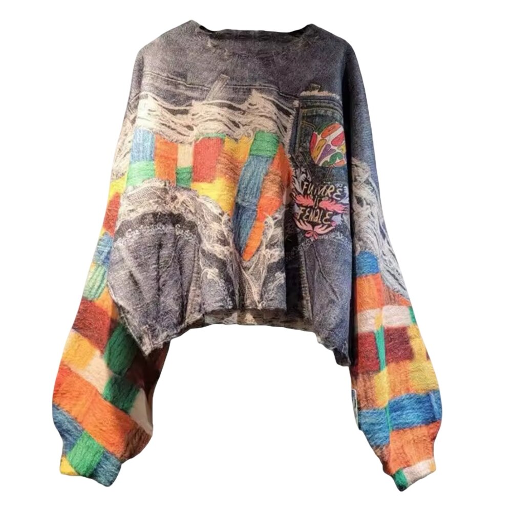 Why You’ll Love It: This is not fast fashion—it’s slow, intentional design. Each pullover feels like a one-of-a-kind artifact, perfect for those who value originality, texture, and storytelling in their wardrobe. Whether worn casually or styled as a centerpiece, the Chromatic Relic Patchwork Pullover commands attention without saying a word.