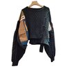 A button-accented shoulder placket enhances the architectural feel of the piece, allowing the garment to drape and fold organically on the body. The cropped, uneven hemline reinforces its sculptural nature, ensuring no two angles appear the same when worn. From the back, the sweater reveals a striking continuation of the cable-knit patterning, reinforcing its all-around craftsmanship and gallery-worthy construction.
