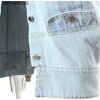 The midsection features raw-edge panel transitions, intentionally frayed to celebrate the beauty of unfinished seams and authentic craftsmanship. These exposed edges contrast with the precision of reinforced stitching, delivering a balance between rebellion and refinement. Subtle fading and whiskering along the darker denim panels provide depth and dimensionality, while the lighter sections amplify brightness and contemporary appeal.