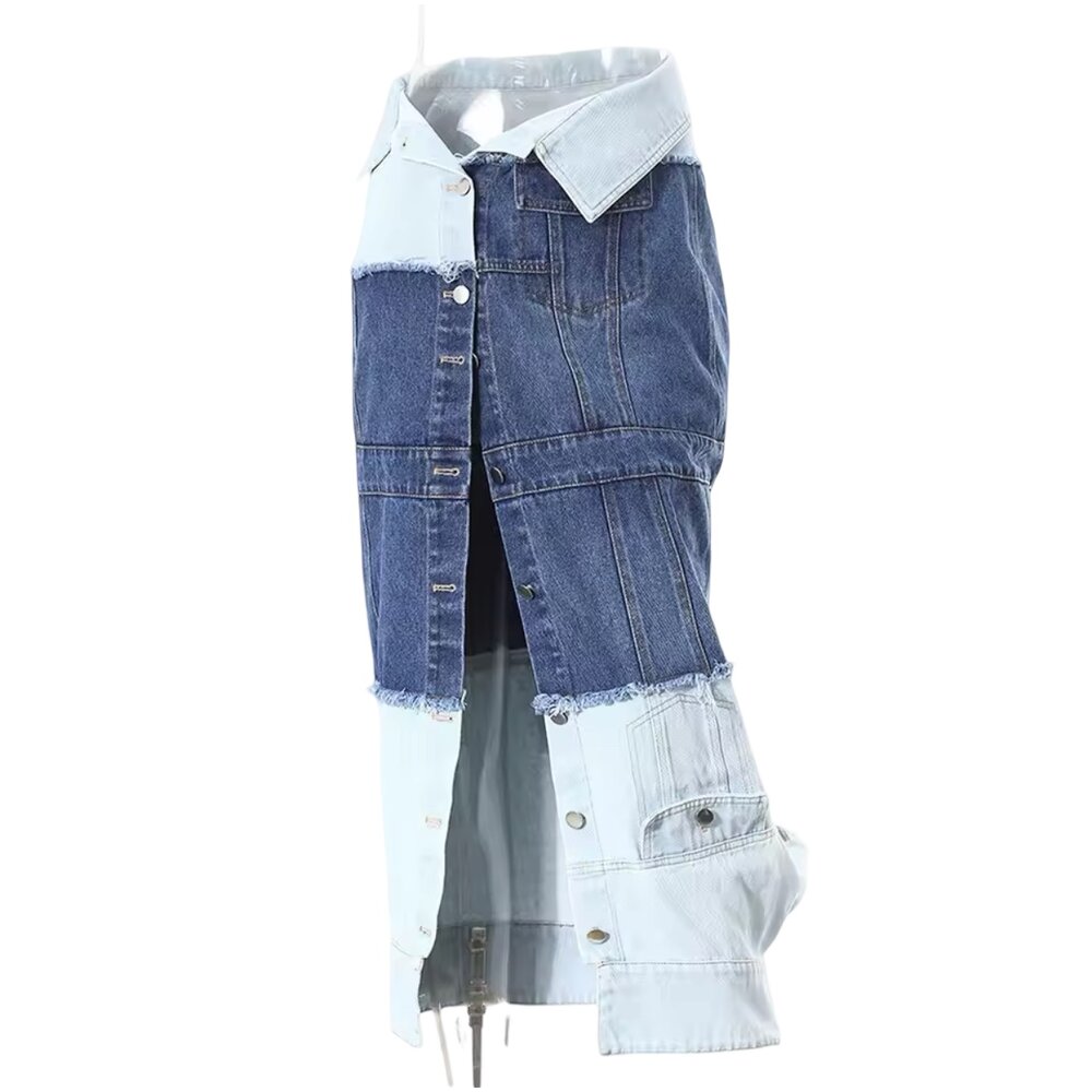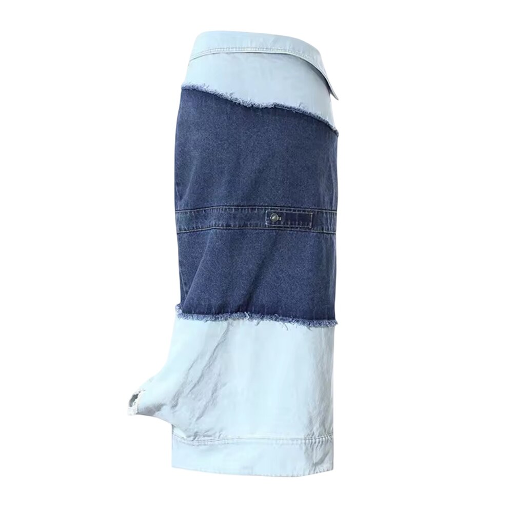 Women's Polar Divide Convertible Patchwork Denim Utility Skirt – Deconstructed Two-Tone Avant Street Statement