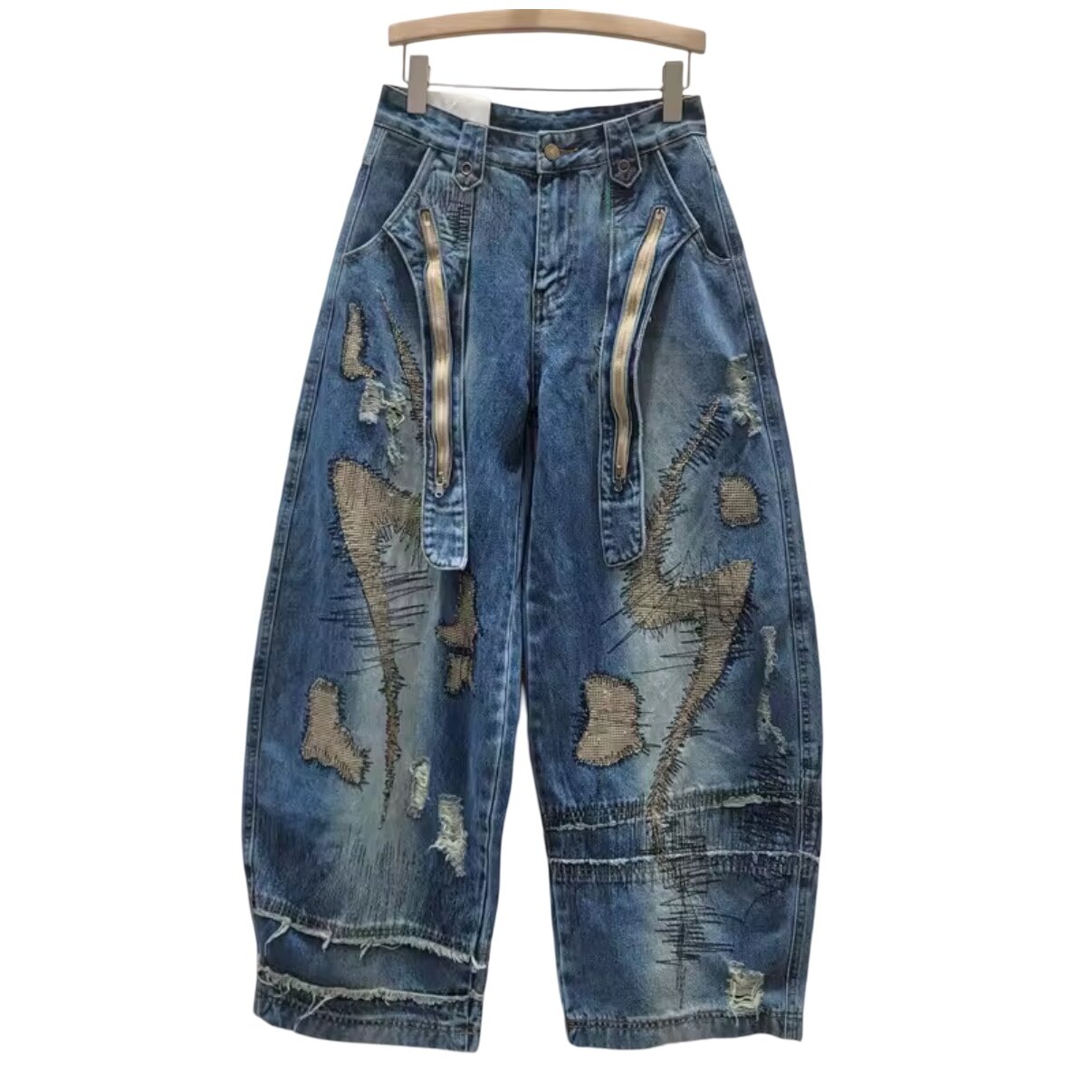 This is not just denim—it’s a wearable artifact, designed to look lived, altered, and reclaimed. Perfect for collectors of experimental fashion, streetwear purists, and anyone who values craftsmanship over conformity.