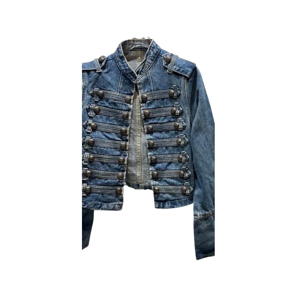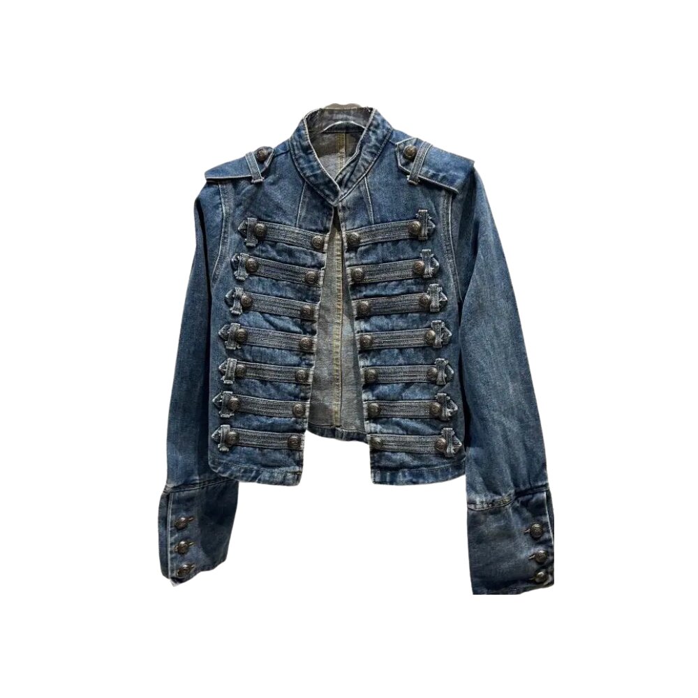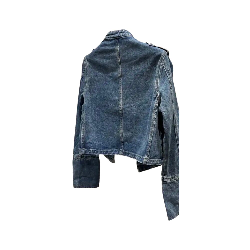 Women's Metal Rib Buckle Design Shoulder Strap Denim Jacket