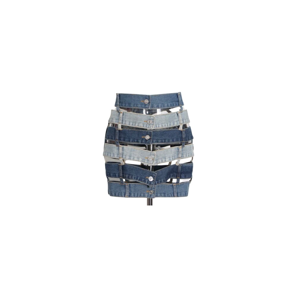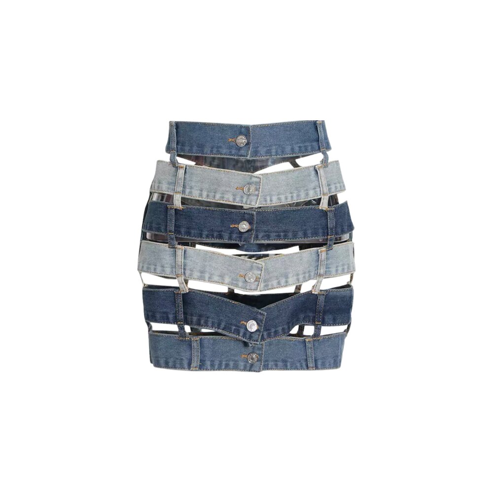 Women's Hollow Out Denim Contrast Mini Skirt
