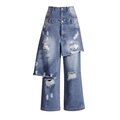 Women's Asymmetric Deconstructed Wide-Leg Denim Trousers — Layered Panel Distress Edition