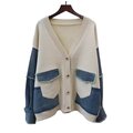 Women's Urban Mosaic Oversized Patchwork Knit Cardigan – Deconstructed Denim Fusion Statement Layer