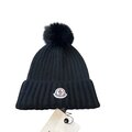 Moncler Wool Beanie with Faux Fur Pom Pom