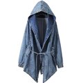 Women's Hooded Lace Up Full Sleeve Loose Denim Windbreaker