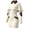 Women's Alpine Luxe Contour” Ribbed Sherpa-Collar Hooded Sweater Dress – Ivory & Saddle Edition