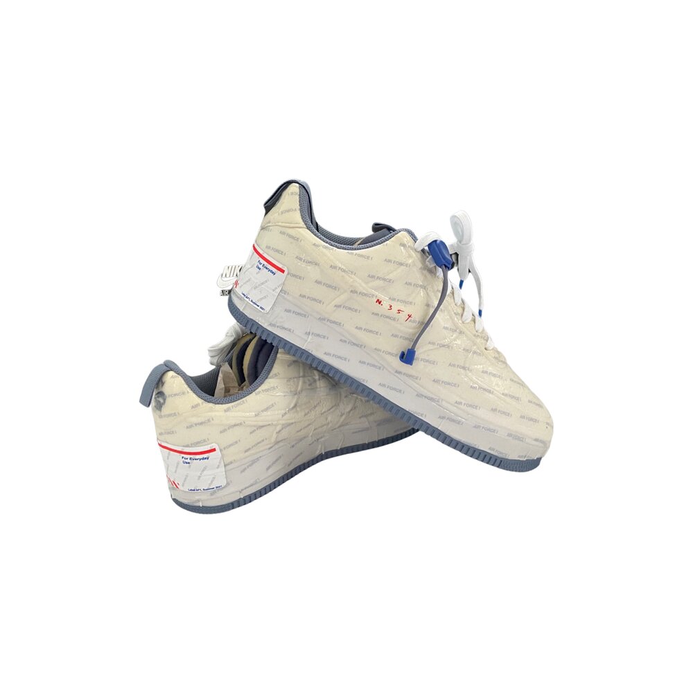The USPS x Nike Air Force 1 Low Experimental ‘Postal Service’ released as an officially licensed product of the USPS, though only after the federal government agency threatened the Swoosh with a lawsuit over intellectual property rights. Inspired USPS packaging, the low-top features a unique vacuum-sealed treatment on the seamless off-white upper. An all-over print resembles the interior of a USPS shipping box, while a wraparound heel overlay mimics the look of a Priority Mail shipping label. Additional details include an exposed foam tongue, supplemental drawcord lacing and an inverted Nike Air logo on the heel tab.