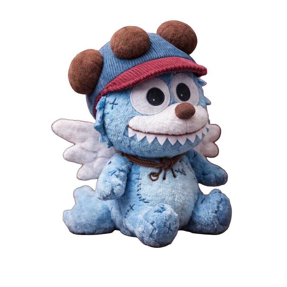 From its back extend hand-layered angelic wings, crafted from ultra-soft snow-white plush. The wings are lightly structured to maintain their shape while remaining irresistibly touchable, symbolizing protection, hope, and ascent.