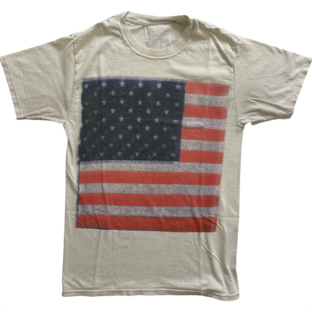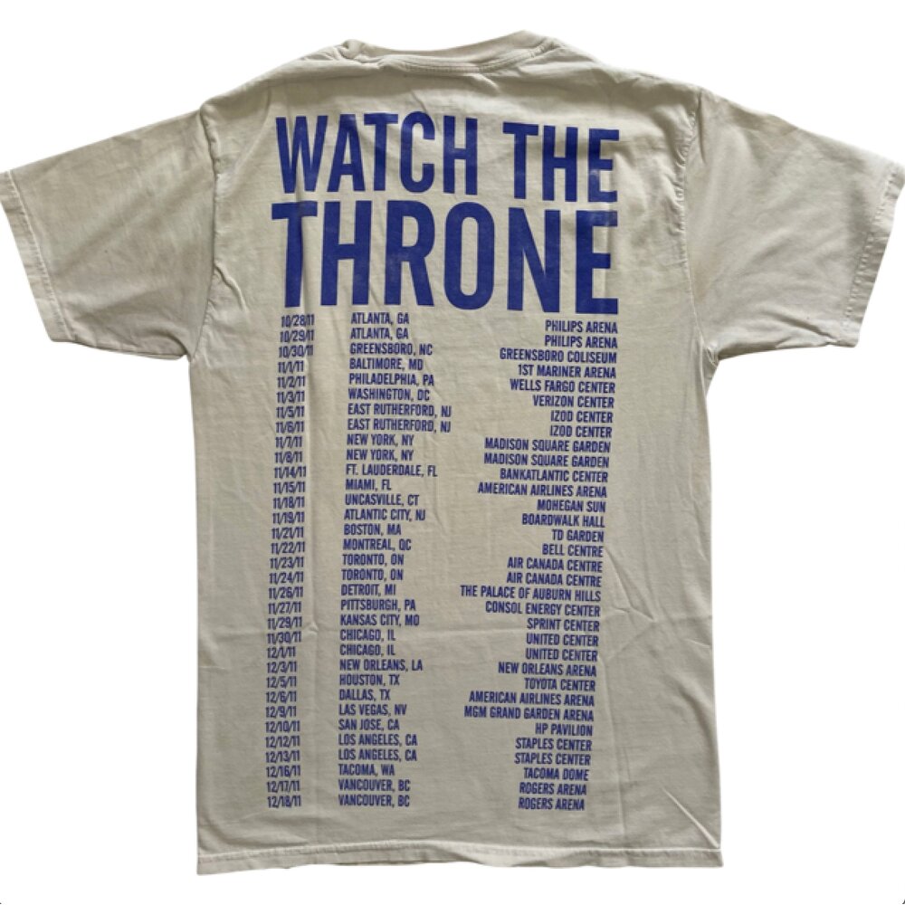 This is an extremely rare and hard to find Jay-Z Watch the Throne Tour Short Sleeve Shirt. This shirt has been carefully stored for years to keep it in this great condition. The shirt features an image of the American flag on the front of the shirt with the Watch the Throne Tour dates on the back a shown. Size: Medium, Color: White