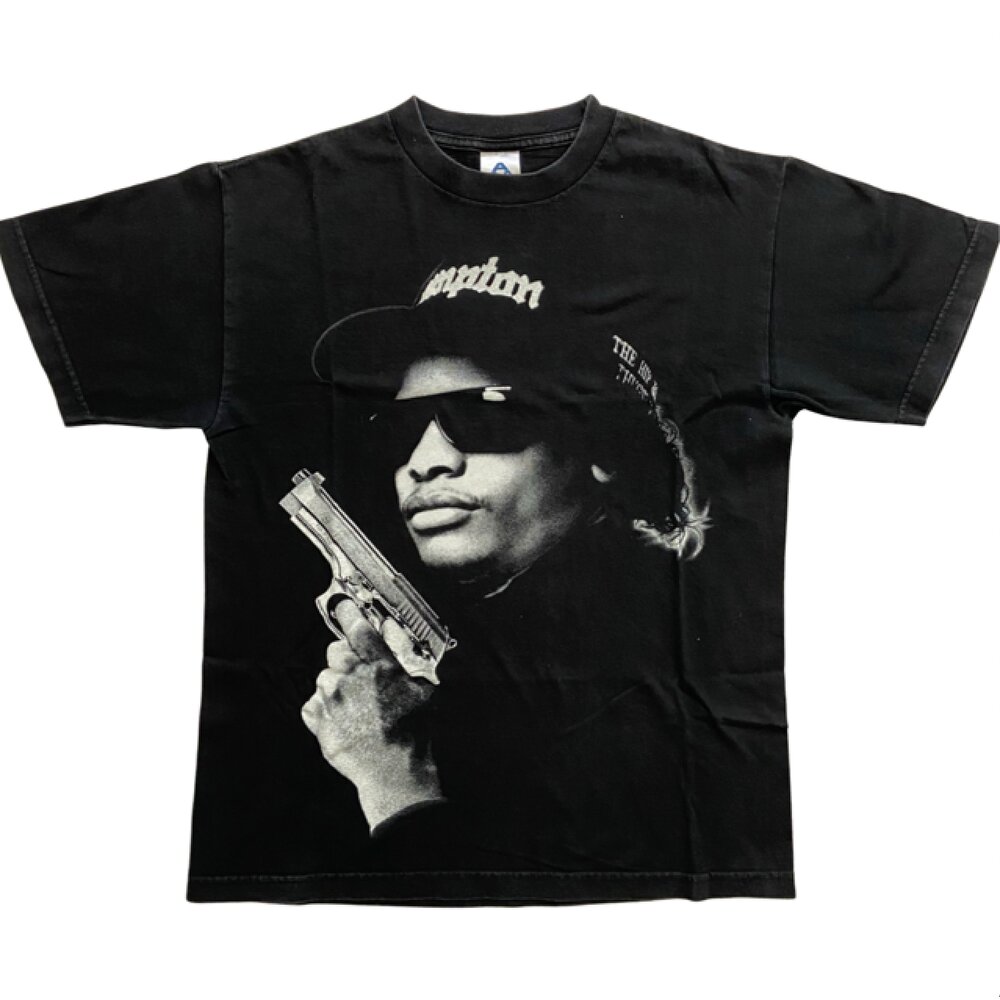This is an extremely rare and hard to find vintage Easy-E Portrait Short Sleeve Shirt. This shirt has been carefully stored for years to keep it in this great condition. The shirt features an image of rap artist Easy-E on the front of the shirt as shown. Size: Medium, Color: Black
