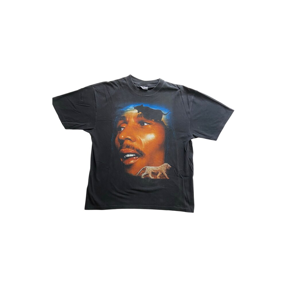 This is an extremely rare and hard to find vintage Bob Marley Short Sleeve Shirt. This shirt has been carefully stored for years to keep it in this great condition. The shirt features an image of reggae artist and songwriter Bob Marley on the front of the shirt with two Lions around him and pictures of him on the back as shown. Size: X-Large, Tag: Rock Chang, Color: Black